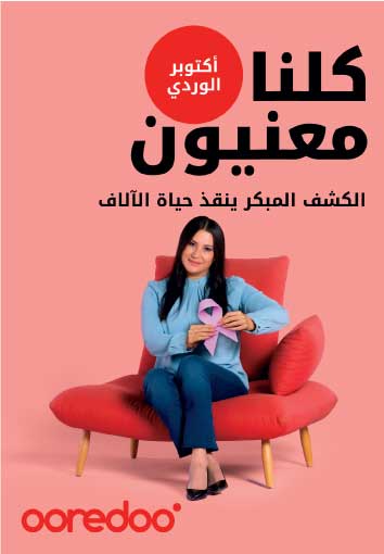 مواصلة نشاطاتها فيما يخص مسؤوليتها المجتمعية، تطلق Ooredoo بالشراكة مع الجمعية الوطنية لمساعدة المرضى (وين نلقى) حملة تحسيسية واسعة حول الكشف المبكر لسرطان الثدي وذلك تزامنا مع نشاطات "أكتوبر الوردي".