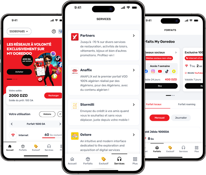 En plus, Ooredoo vous offre 7 jours gratuits en souscrivant à ANAZIK pour découvrir la panoplie de contenu et la diversité des fonctionnalités. Passée cette période, vous pourrez toujours accéder au service tout en adhérant à l’une des formules de souscription (à partir de 25 DA).