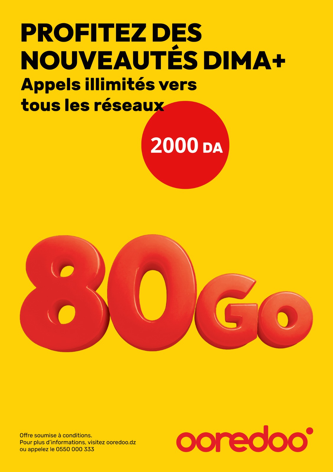 Fidèle à son engagement d’offrir à ses clients des services innovants et toujours plus avantageux, Ooredoo annonce l’évolution de son offre postpayée Dima+, et ce à compter du 07 août 2025.