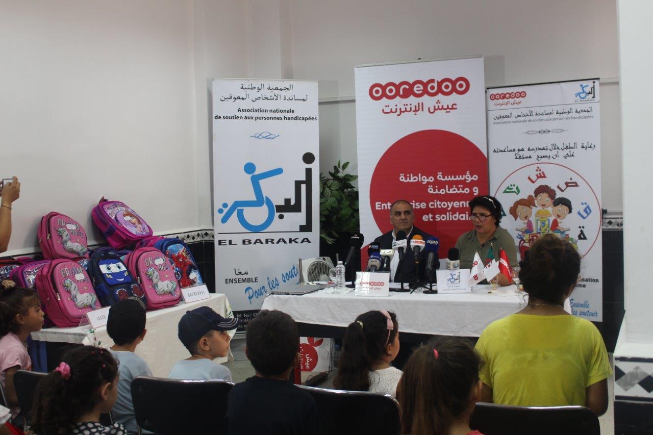 A l’approche de la rentrée scolaire, Ooredoo entreprise citoyenne, apporte son soutien aux enfants scolarisés en situation de handicap et organise en collaboration avec l’Association Nationale de Soutien aux Personnes Handicapées « EL BARAKA » une opération de don des trousseaux scolaires à cette frange de la société à travers plusieurs wilayas du pays.