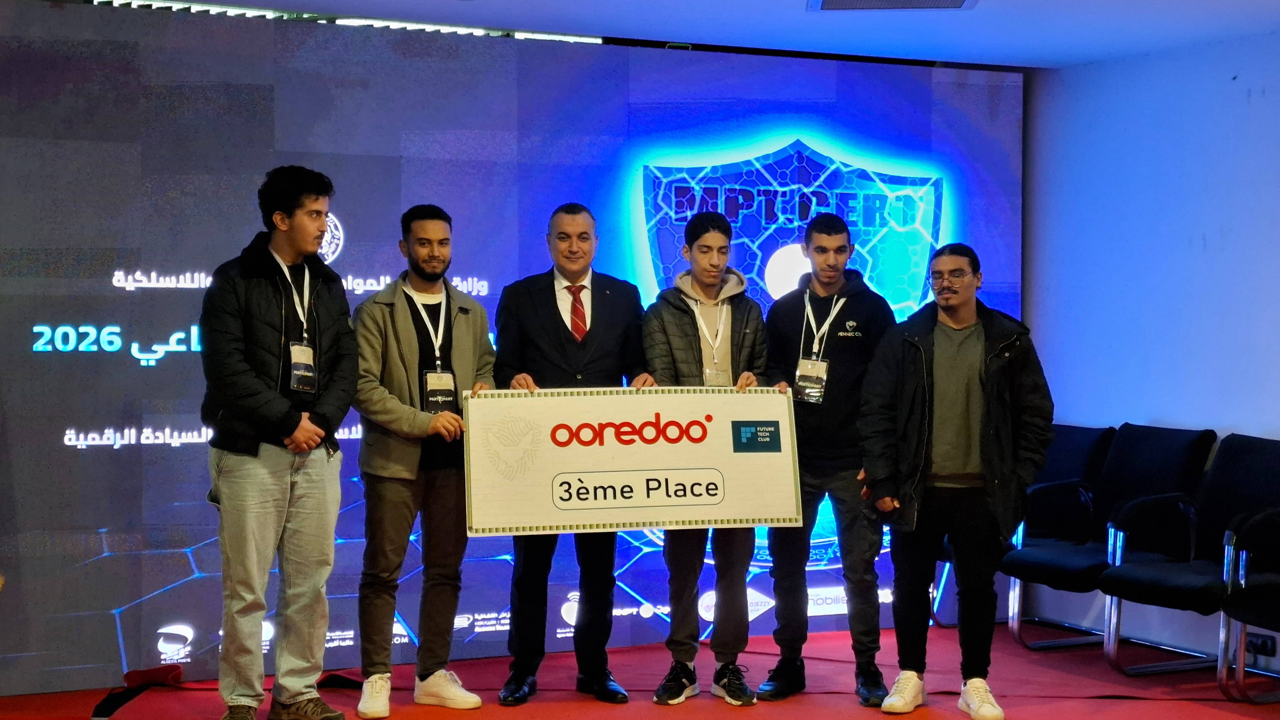La cérémonie de clôture s’est déroulée en présence du ministre de la Poste et des Télécommunications, M. Sid Ali Zerrouki et des représentants de Ooredoo. À cette occasion, trois prix offerts par Ooredoo ont été remis aux équipes gagnantes par le Ministre, saluant leur excellence, leur esprit d’innovation et leur maîtrise des enjeux liés à la cybersécurité.