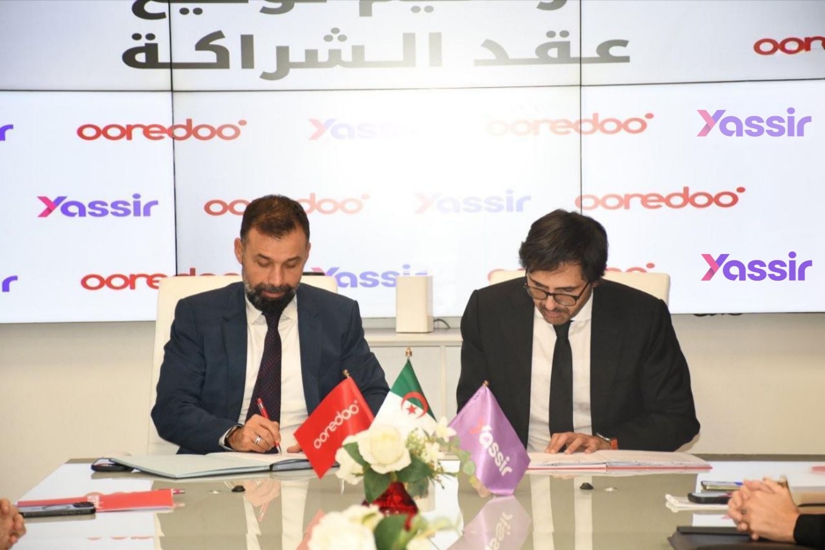 Cet accord de partenariat a été paraphé conjointement par le Directeur Général de Ooredoo M. Roni Tohme et la fondateur et Directeur Général de Yassir M. Noureddine Tayebi, et ce en présence des cadres dirigeants et représentants des deux parties.