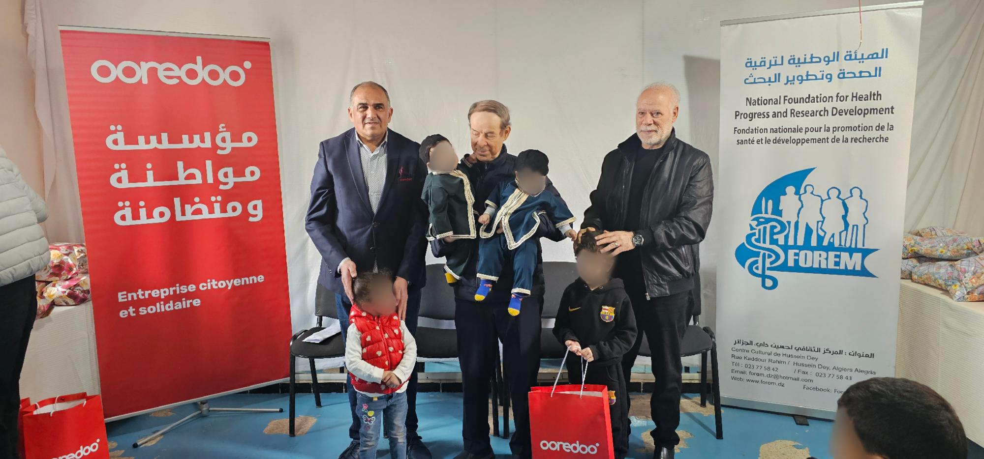 Une cérémonie de distribution symbolique de ces vêtements a été organisée au siège de la fondation à Bentalha (Alger) en présence de Pr. Mostefa Khiati ,président et fondateur de la Fondation national pour la promotion de la santé et du développement de la recherche (FOREM), de M. Ramdane Djezairi, directeur des Affaires Corporatives de Ooredoo, ainsi que des représentants des deux parties, dans une atmosphère empreinte de convivialité et de solidarité, illustrant l’importance des actions de soutien destinées aux catégories les plus vulnérables de la société, notamment les enfants.