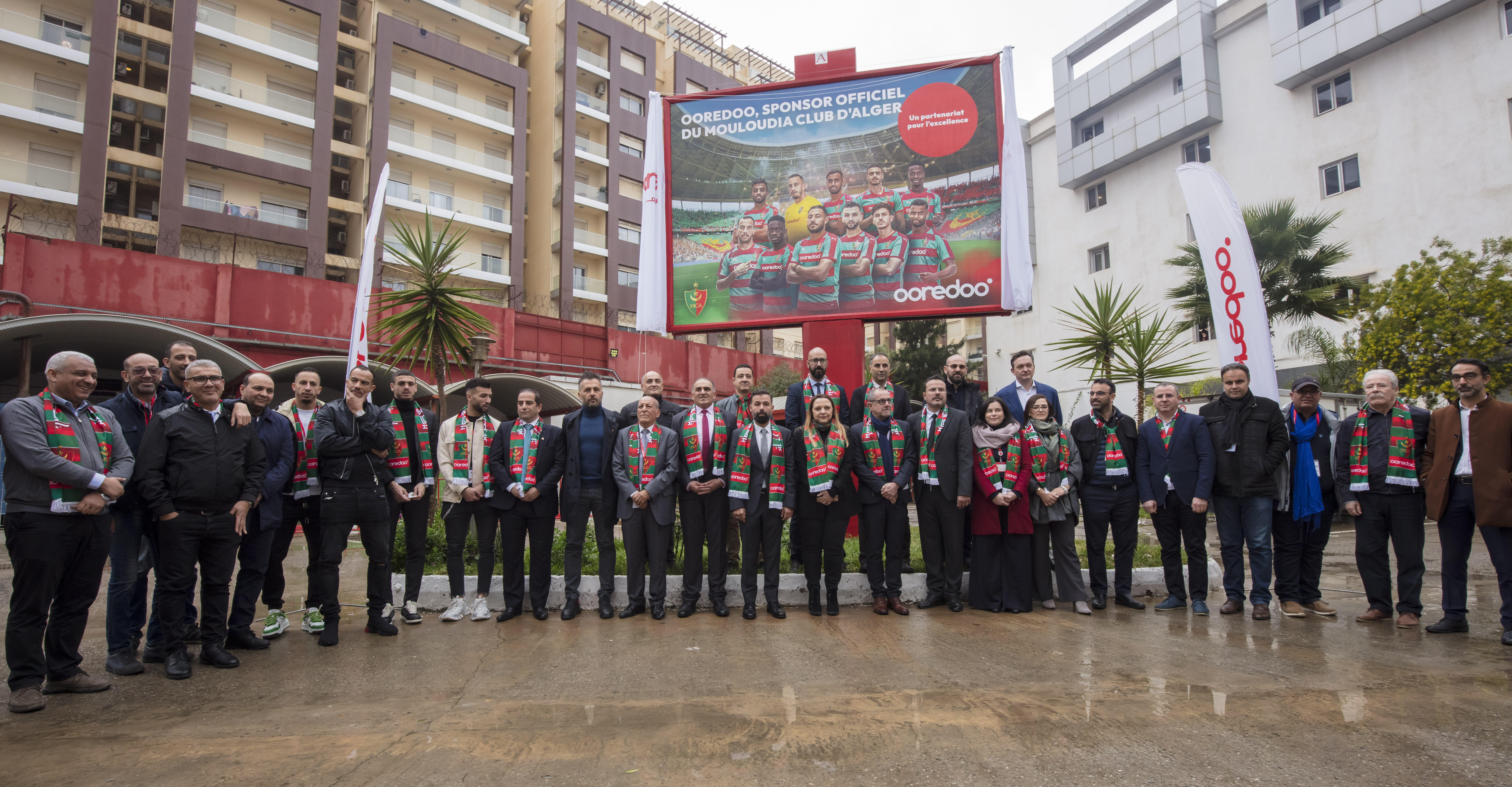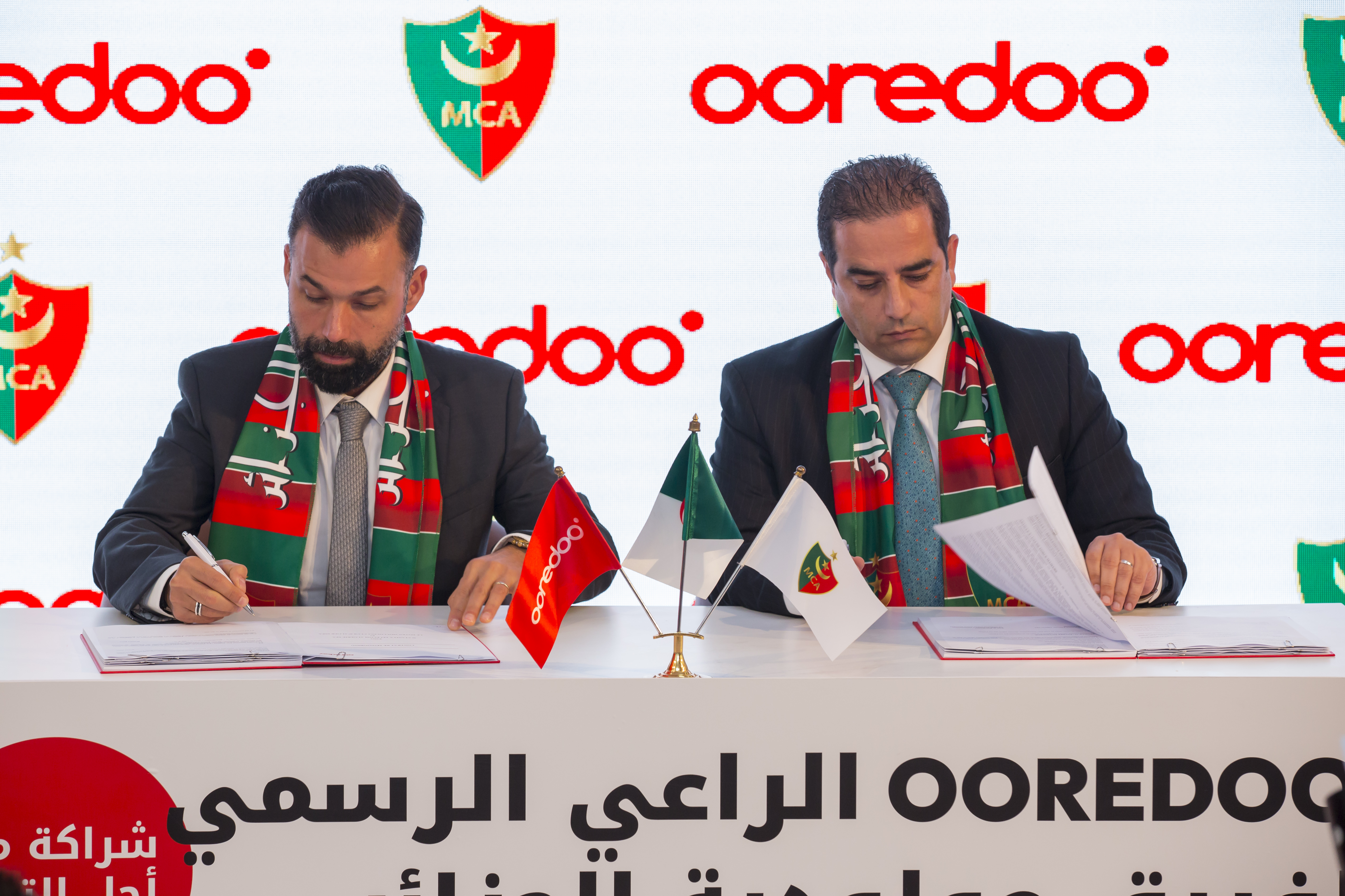 L’accord de partenariat a été paraphé conjointement par le Directeur Général de Ooredoo, M. Roni Tohme et le Président du Conseil d’Administration du Mouloudia Club d’Alger (MCA), M. Mohamed Hakim Hadj Redjem, lors d’une cérémonie organisée au niveau du siège de Ooredoo sis à Ouled Fayet-Alger en présence du top management de l’entreprise, du staff technique et administratif du club et de joueurs du Mouloudia Club d'Alger.