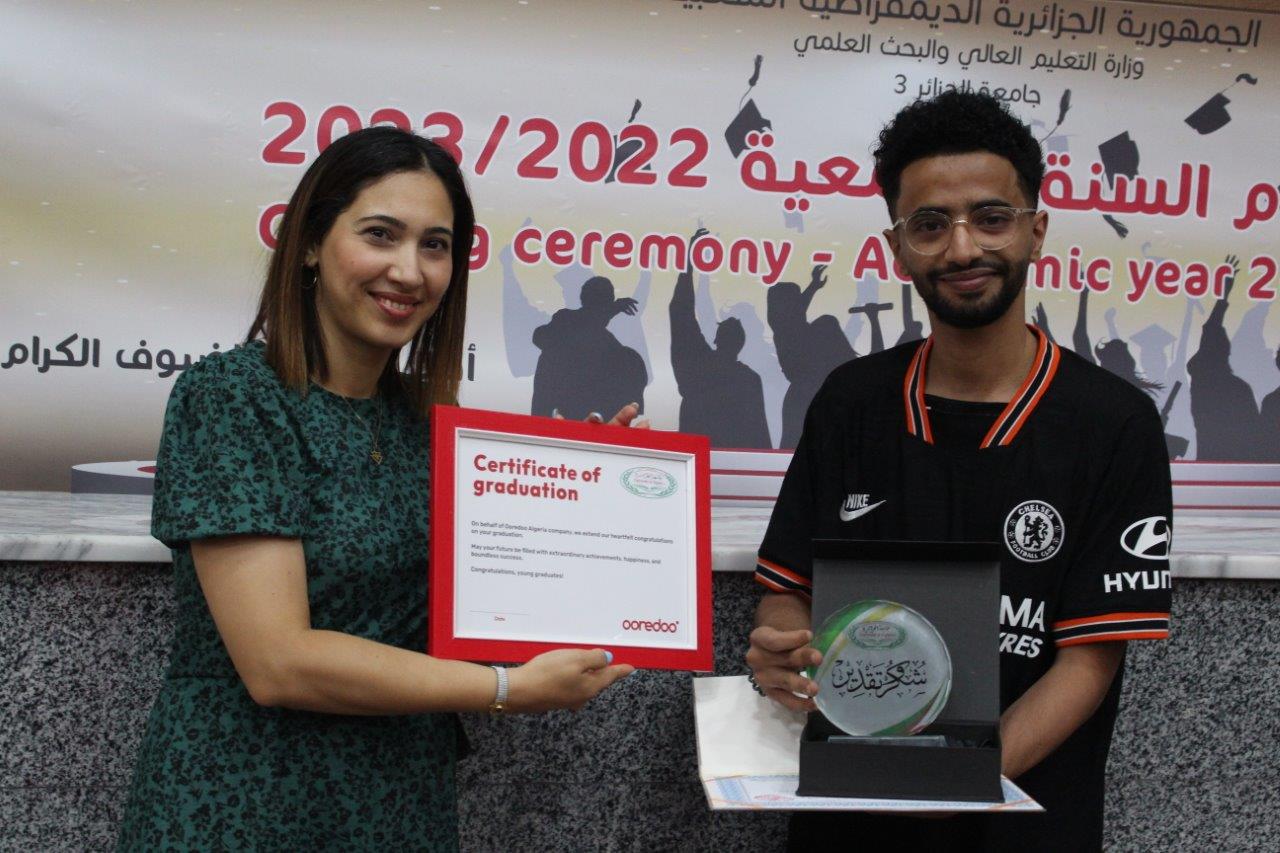 Entreprise technologique promotrice de l’apprentissage des étudiants algériens, Ooredoo a accompagné l'Université d'Alger 3, lors de la cérémonie organisée ce jeudi 20 juillet 2023, en l’honneur des étudiants majors de leurs promotions dans diverses spécialités relevant de la faculté des sciences économiques, de la faculté des sciences commerciales et sciences de gestion, la faculté des sciences de l’Information et de la Communication, la faculté des Sciences politiques et des Relations Internationales et de l’institut de l’Education Physique et Sportive.