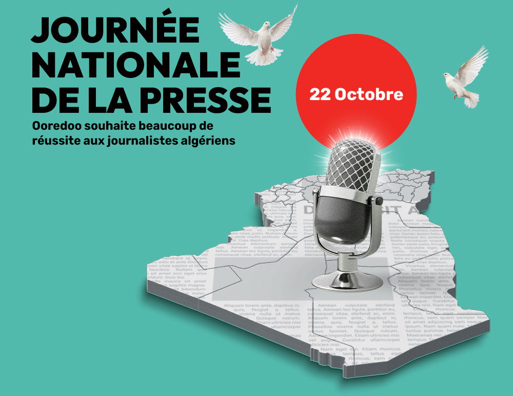 A l’occasion de la célébration de la Journée Nationale de la Presse coïncidant avec le 22 octobre de chaque année, Ooredoo présente ses meilleurs vœux de réussite et de prospérité à l’ensemble de la corporation journalistique Algérienne.